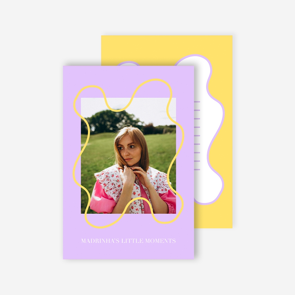 No modelo Inscription, a capa ganha uma assinatura própria. A técnica de stamping grava nomes, datas ou pequenas frases diretamente no tecido, criando um relevo subtil e elegante que transforma o álbum num objeto ainda mais ligado à história que guarda.